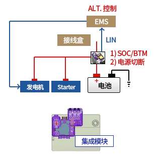 由识别现有发电控制及线路短路的电流传感器、电源切断用锁定继电器,以及进行统一识别和控制的模块组成。