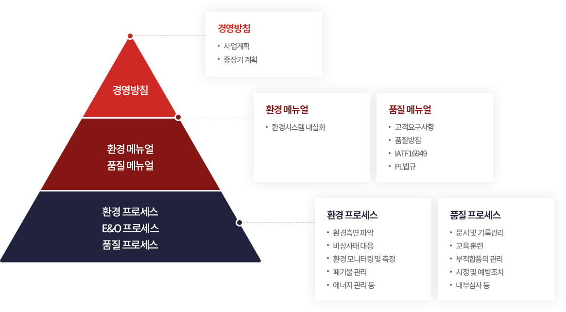 품질방침 및 목표는 주기적으로 검토하여 당사의 사업목적과 일치 시킨다.